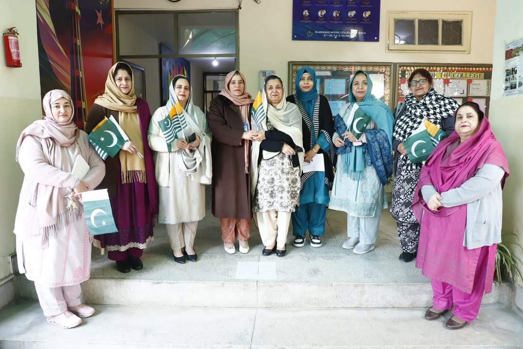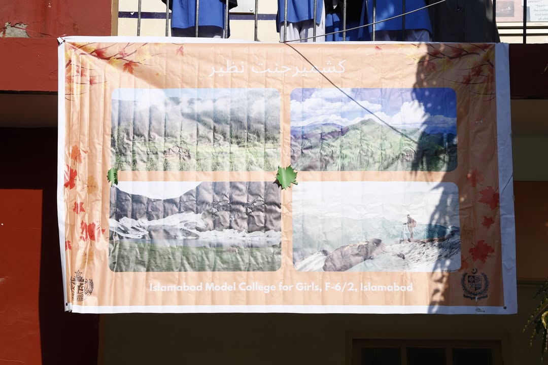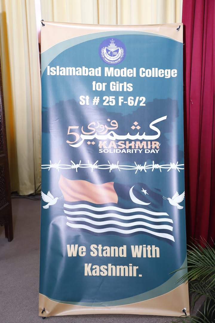 On February 3, 2026, Islamabad Model College for Girls (ST-25, F-6/2) hosted the powerful Muqaddama-e-Kashmir event in our auditorium as part of Federal Directorate of Education’s Kashmir Solidarity Day series. Students and teachers kicked off with a heartfelt human chain in the lawn and corridors, waving Pakistani & Kashmiri flags and placards for freedom. Honorable guests, faculty members, students and Principal Prof. Aaliya Durrani, Vice Principals Ms. Asma Maqbool Niazi & Ms. Tasneem Kousar, and Headmistress Ms. Iram Aziz, joined in solidarity.