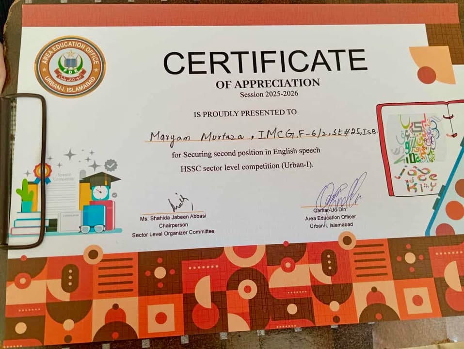 Maryam Muratza earned 2nd place in English Speech (HSSC Level)