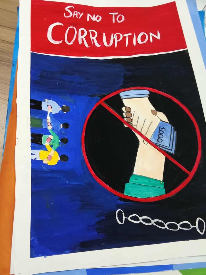 On September 24, 2025, the Fine Arts Department organized a poster competition on the suggestion of NAB. Students from Class 9 to 2nd Year Fine Arts enthusiastically took part in this event. Here are the final results! A big round of applause for our young artists who showcased innovative ideas and effectively expressed their thoughts on corruption through their artwork.