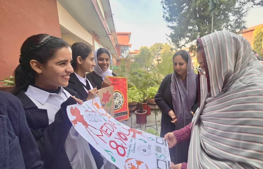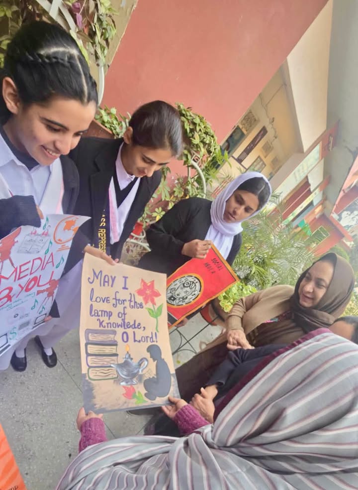 Social Media Literacy Week, organized by the Character Building Society, featured a creative highlight today as our students crafted stunning posters to raise awareness. They artistically painted their thoughts and proudly presented them during morning assembly. The Principal, Prof. Aaliya Durrani, along with VPs Ms. Asma Maqbool Niazi and Ms. Tasneem Kausar, and Senior Faculty Member Ms. Shaheen Shahid from the Primary Section, appreciated the students’ hard work and engaged in discussions about their thought-provoking ideas on media literacy.