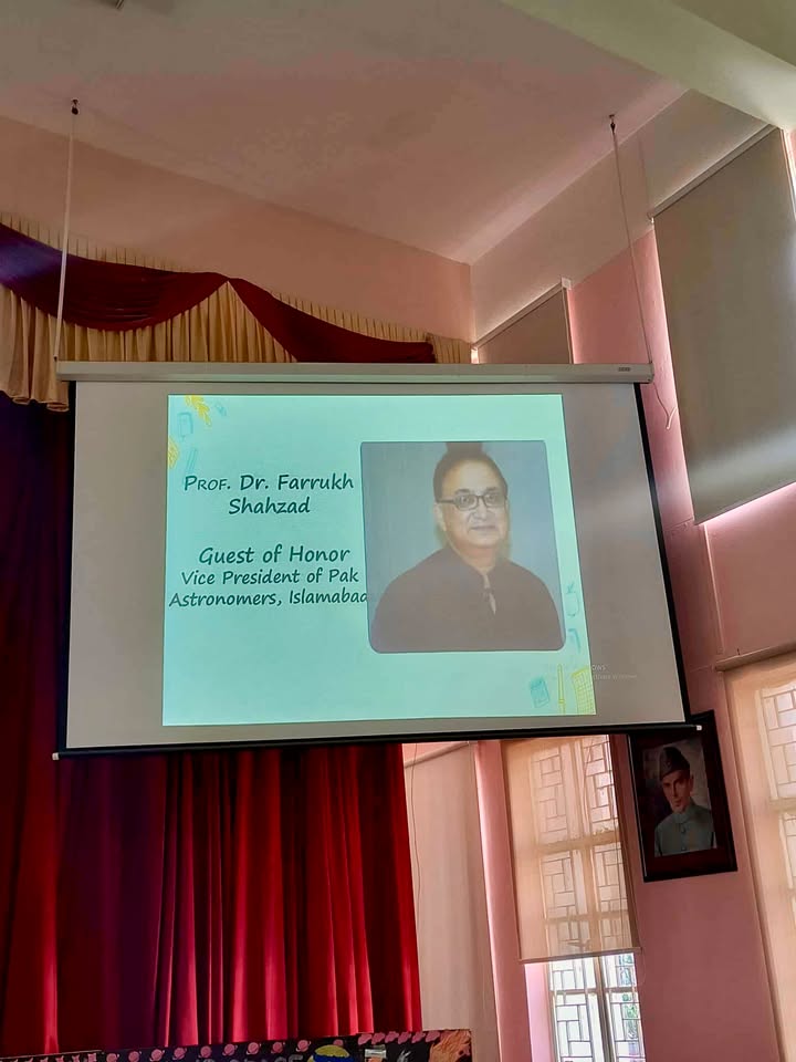 On Wednesday, October 8, 2025, Islamabad Model College for Girls, F/6-2, hosted a special program in the college hall as part of this global celebration. This event was thoughtfully organized by the skilled team of the Physics Department, led by their dedicated head, Dr. Afsheen Khan, in collaboration with the college management, the event featured guest of honour Professor Dr. Farrukh Shahzad—a distinguished ENT surgeon at Polyclinic Hospital Islamabad and Vice President of Pak Astronomers Islamabad. Dr. Shahzad, with over 50 years of astronomy experience and passion since childhood, also impressed as a dedicated astro-photographer.