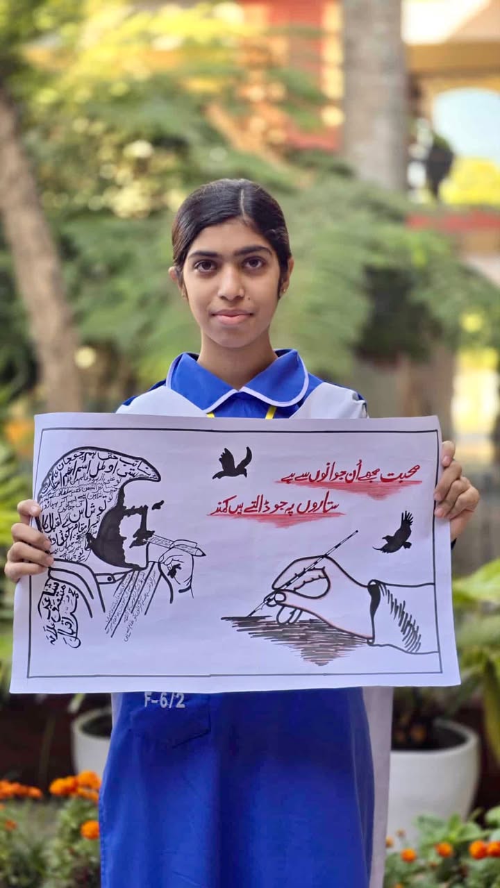Today marked the memorable conclusion of our Iqbal Week celebrations. Under the theme of Character Building and Civic Society, one of our students delivered a touching and impactful speech on the importance of family and relationships. Following that, participants of the poster competition proudly displayed their creative posters as a tribute to our national poet, Allama Muhammad Iqbal. The auditorium then buzzed with energy as students from Primary to BS levels competed in an inspiring speech contest. This week was truly filled with enriching activities, insightful knowledge, and deep appreciation for the legacy of Allama Muhammad Iqbal.