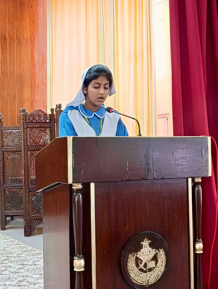 The Primary section presented a beautiful and creative tableau on “پہاڑ اور گلہری”. Our talented Vice Principals, Ms. Asma Maqbool and Ms. Tasneem Kausar, served as judges for the event. The program concluded with a heartfelt address by VP Co-Curricular, Ms. Tasneem, followed by certificate distribution and the National Anthem.
