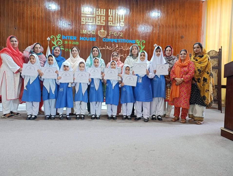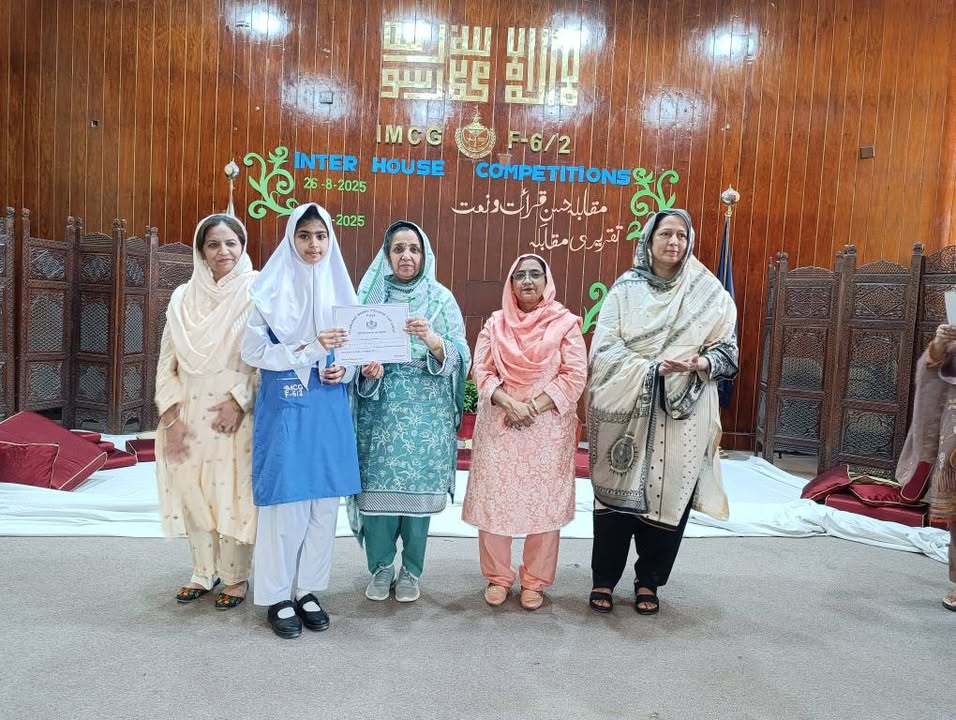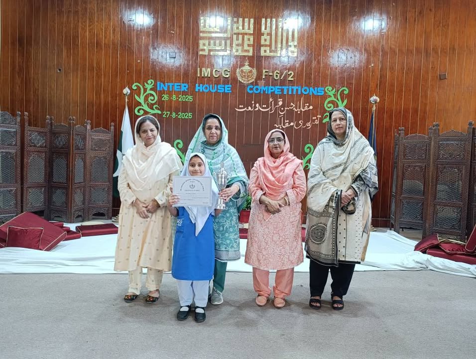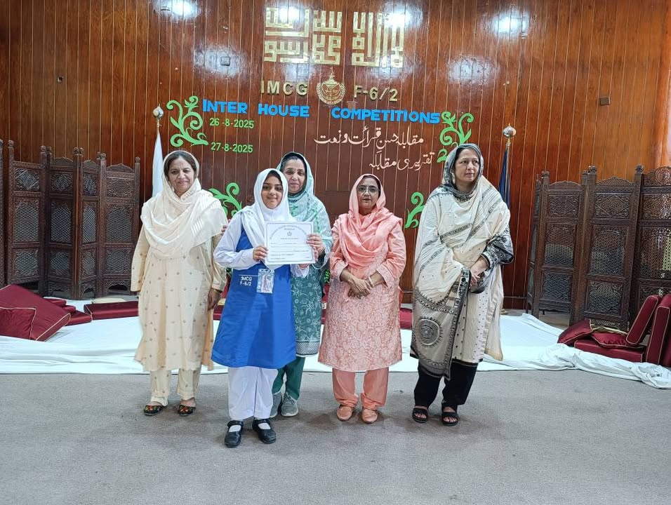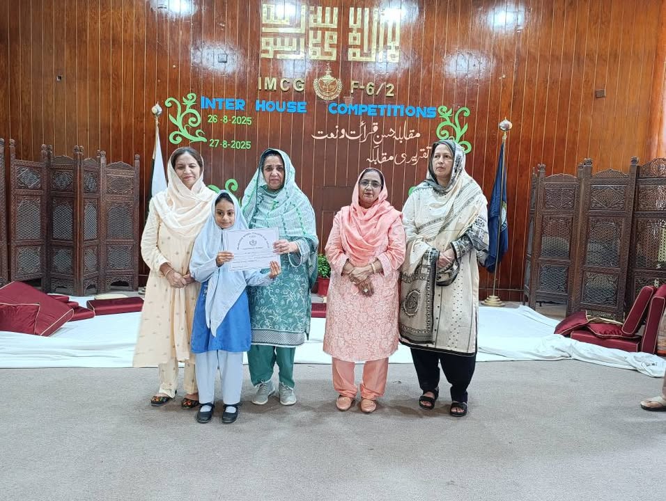 Today’s Inter-House Qirat and Naat Competition for Junior Section was a huge success! π₯The chief guest principal prof Aaliya Durrani appreciated the students .Students from IMCG F-6/2 showcased their talents in Qirat and Naat recitation. π Judges Ms. Farkhanda and Ms. Shehla appreciated the beautiful voices and heartfelt performances. π€π« Both Qirat and Naat recitations were presented with passion and dedication. π Proud of our young talents! π